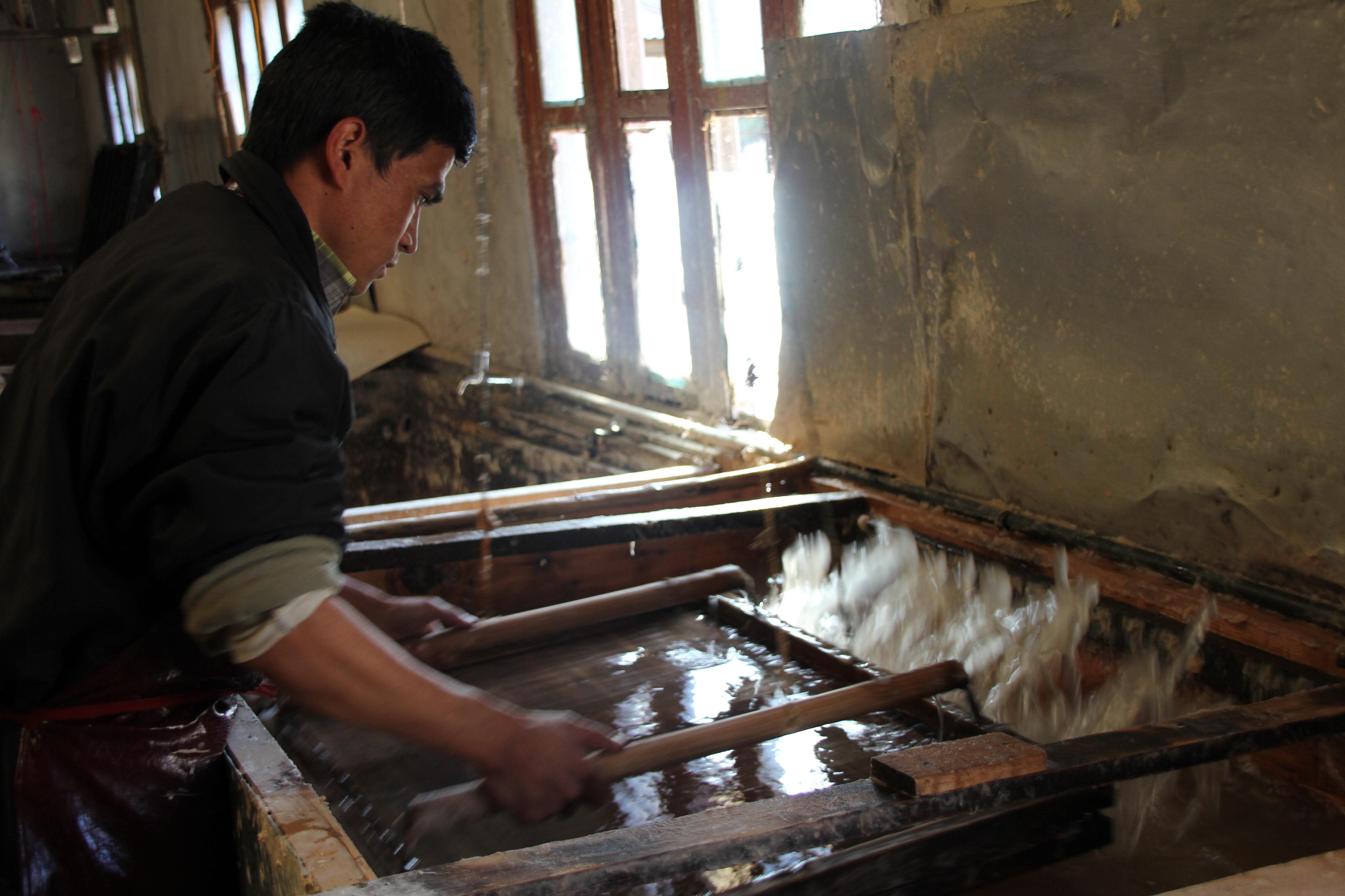 The paper made in Bhutan is based on unique materials of the Himalaya, the bark of the The Daphne Papyri, which can be found at altitudes of 3,000 feet and above, the bark of the Edgeworthia Papyri, plus various additional ingredients like flowers and leaves (for example from the ubiquitous chili and hemp plants), to add textures and patterns.