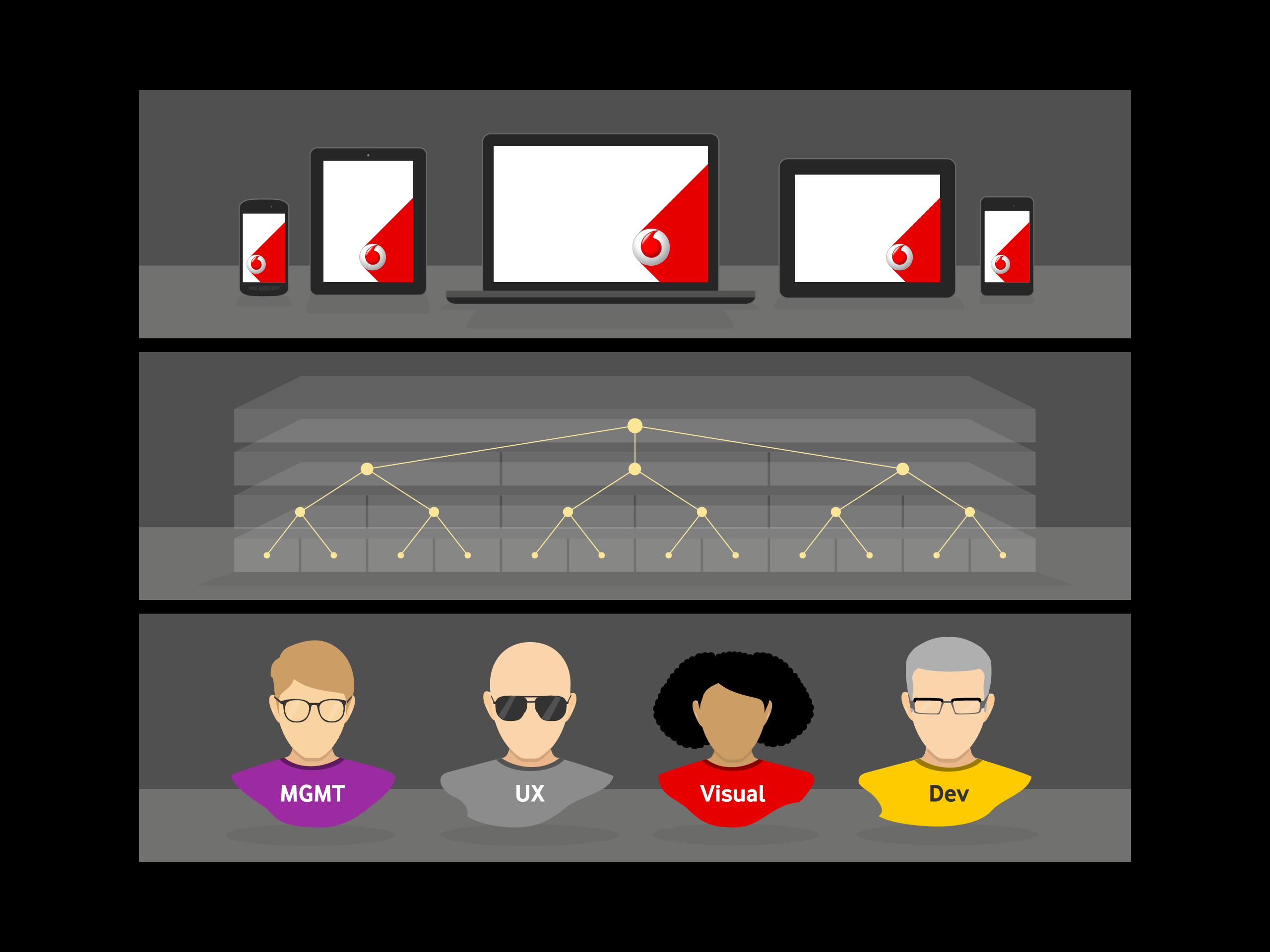From 2012 to 2014, I was tasked with developing the first responsive global web frontend for Vodafone Group, which then developed into an interactive design guideline and repository for all global web and native mobile applications.
