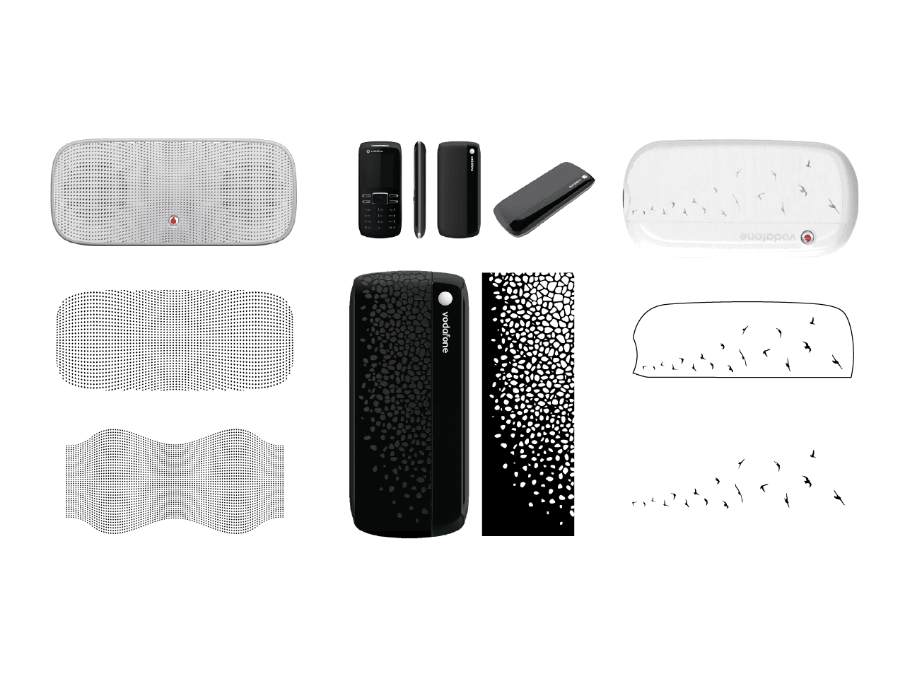 In addition to custom user interfaces, Vodafone also delivered branded industrial design, from phone cases to WiFi routers and speakers. I was involved in pattern designs for multiple hardware devices that I still see in everyday life in people's homes.