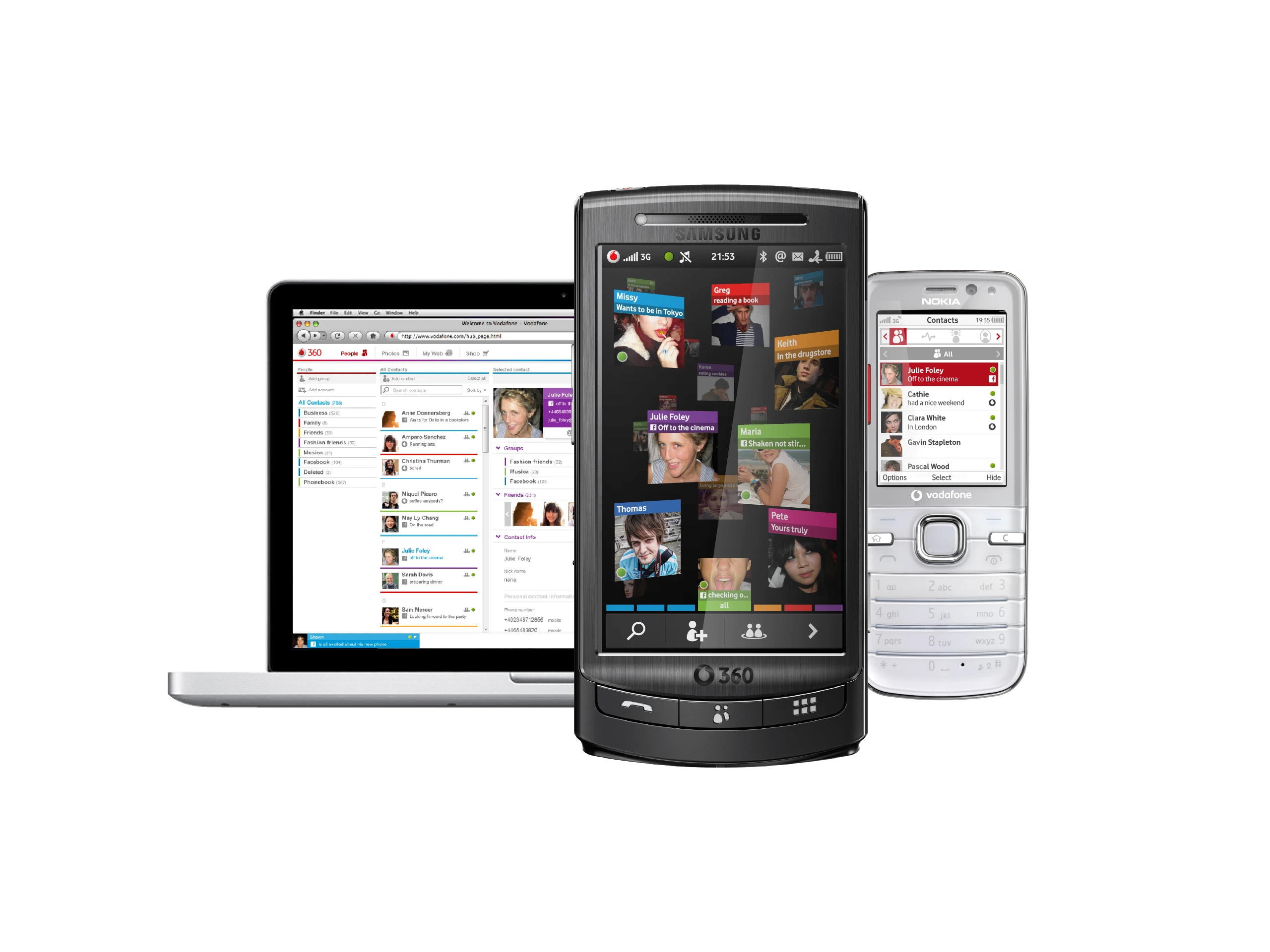 Vodafone 360 was developed to be the aggregate incarnation of all of Vodafone's services, including music, an app store and social network identity aggregator, a cloud-based address book and social network of its very own, and incarnated as hardware in dedicated mobile phones with a unique 3D social interface, as well as a web application.